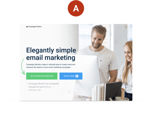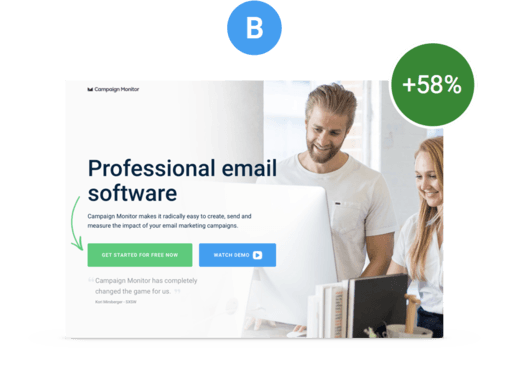 Campaign Monitor is one of the worlds leading Email Marketing software providers, and they partnered up with us at ConversionLab to get higher conversion rates. They had been using landing pages with great success, and variant A below was their current champion. With A/B testing, also called split testing, we were be able find a better performing formula. The test below shows a 58% uplift in conversion rates by using dynamic content to match the ads on Google AdWords .